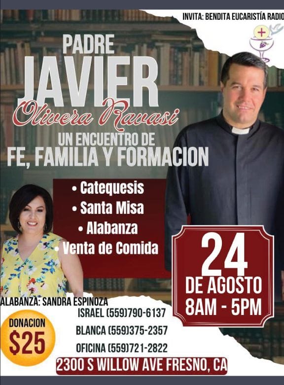 Actualidad Conferencias en El Fresno-California 🇺🇸 agosto 9, 2024agosto 7, 2024 Que No Te La Cuenten 2 comentarios Por gracia de Dios, entre el 23 y 24 de Agosto próximo, estaremos en El Fresno, California, impartiendo algunas conferencias y clases de Catecismo. Bendiciones P. Javier Para inscripciones, comunicarse co los números aparecidos en pantalla (son números de USA)